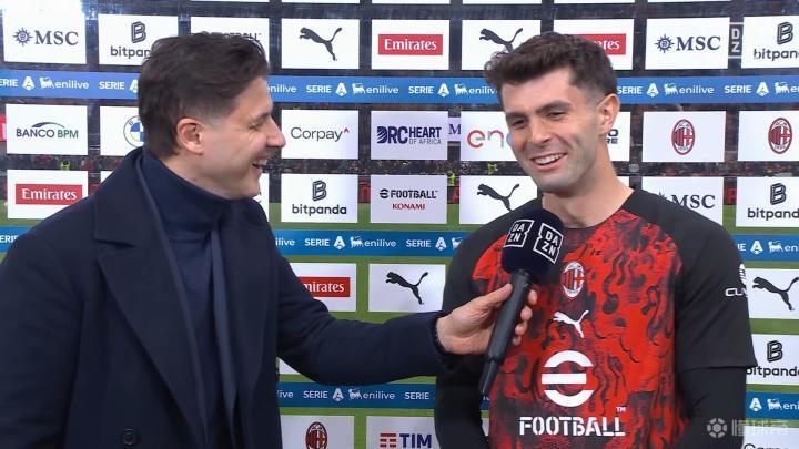 米蘭在意甲第28輪主場迎戰(zhàn)國際米蘭的米蘭德比即將開始,普利希奇在賽前接受了DAZN的采訪。